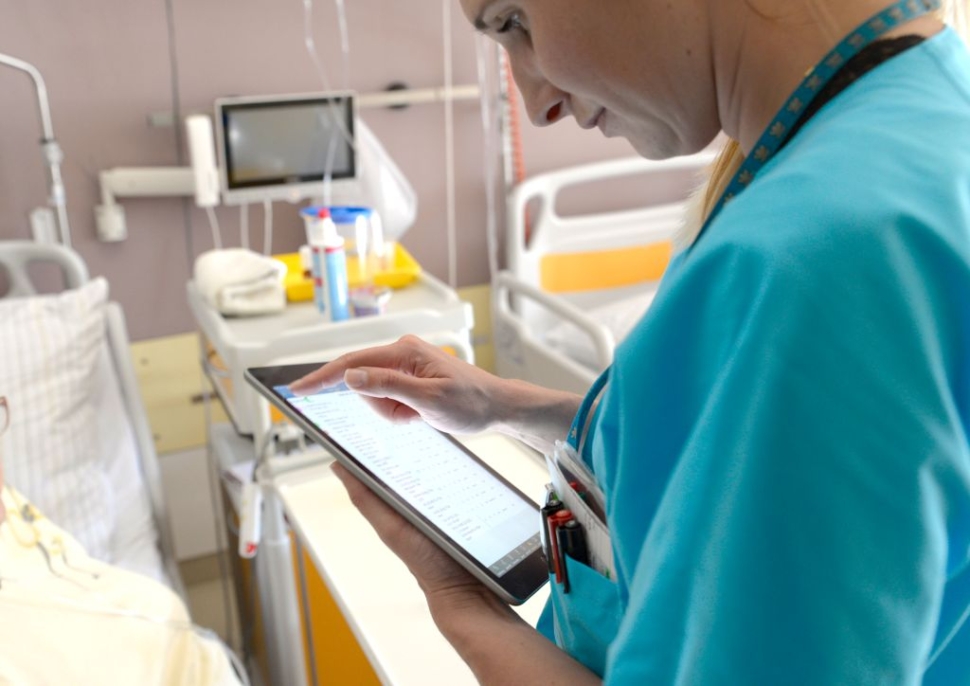 Pflegekraft bei der Dokumentation im Krankenhaus St. Elisabeth und St. Barbara Halle (Saale)